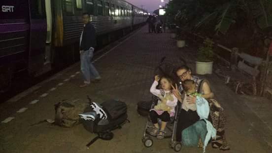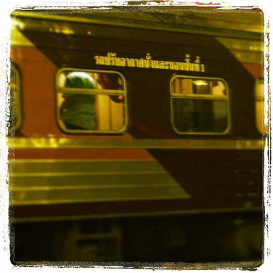 zwar hat es in indien etwas mehr charm aber es ist trotzdem toll nachts liegend durch die landschaft zu fahren. ilyas ist beim durchs fenster gucken eingeschlafen. karim und yara haben es sich oben bequem gemacht. mit einer std. verspätung sind wir los gefahren und waren morgens um 6 in chumpon.
